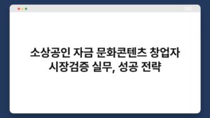 소상공인 자금 문화콘텐츠 창업자 시장검증 실무, 성공 전략