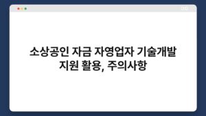 소상공인과 자영업자 여러분, 자금이 부족해 고민이신가요? 기술 개발 지원을 통해 사업을 성장시키는 방법이 있습니다. 하지만 이 과정에서 주의해야 할 점도 많습니다. 오늘은 소상공인 자금 지원을 활용하는 방법과 주의사항에 대해 알아보겠습니다. 이 글을 통해 필요한 정보와 ...