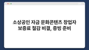 소상공인 여러분, 자금 확보가 언제나 쉽지는 않죠? 특히 문화콘텐츠 분야에서 창업을 꿈꾸는 분들은 자금 문제로 고민이 많을 겁니다. 그러나 보증료 절감의 비결과 증빙 준비 방법을 알면 상황이 달라질 수 있습니다. 이번 글에서는 소상공인을 위한 자금 ...