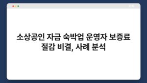 소상공인으로서 자금 문제는 언제나 큰 고민거리입니다. 특히 숙박업을 운영하는 분들은 보증료 부담이 더욱 크죠. 하지만 이 문제를 해결할 수 있는 방법이 있습니다. 이번 글에서는 소상공인 자금 관리와 숙박업 운영자들이 보증료를 절감할 수 있는 비결을 사례를 ...