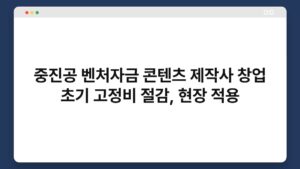 창업 초기, 특히 콘텐츠 제작사와 같은 벤처 기업을 운영하는 데 있어 고정비 절감은 매우 중요합니다. 중진공의 벤처자금을 활용하면 초기 비용 부담을 줄일 수 있는 기회를 제공합니다. 이 글에서는 현장에서 적용할 수 있는 여러 가지 전략을 ...