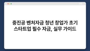 중진공 벤처자금 청년 창업가 초기 스타트업 필수 자금, 실무 가이드