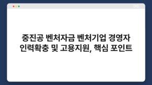 중진공 벤처자금 벤처기업 경영자 인력확충 및 고용지원, 핵심 포인트