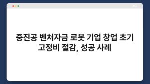 로봇 기업 창업, 많은 이들이 꿈꾸는 분야죠. 하지만 초기 자금 문제로 고민하는 분들이 많습니다. 특히 고정비 절감이 중요한데요, 중소기업진흥공단의 벤처자금이 큰 도움이 될 수 있습니다. 성공 사례를 통해 이 자금이 어떻게 창업 초기의 부담을 덜어줄 ...