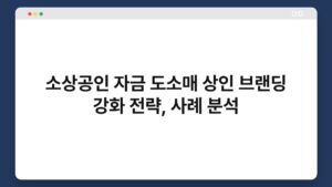 소상공인 여러분, 자금 걱정이 크신가요? 도소매 상인으로서의 경쟁이 치열해지는 요즘, 브랜딩 강화 전략이 더욱 중요해졌습니다. 이 글에서는 소상공인이 자금을 효과적으로 운용하고, 도소매 상인으로서 브랜딩을 어떻게 강화할 수 있는지에 대한 사례 분석을 통해 구체적인 방법을 제시하겠습니다. ...