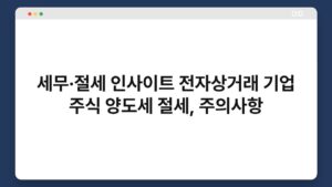 전자상거래 기업을 운영하는 분들이라면 주식 양도세와 절세에 대한 고민이 많으실 겁니다. 세무와 절세 인사이트는 기업의 재무 건전성을 높이는 데 큰 역할을 합니다. 특히, 전자상거래에서 발생하는 수익에 대한 세금 관리가 중요하죠. 이 글에서는 주식 양도세 절세 ...