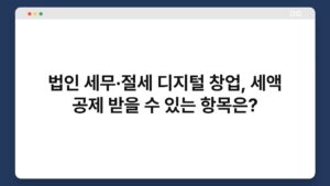 법인 세무와 절세는 많은 창업자들에게 중요한 고민거리입니다. 특히 디지털 창업을 고려하는 분들은 세액 공제를 통해 비용을 절감할 수 있는 기회를 놓치지 않아야 합니다. 어떤 항목에서 세액 공제를 받을 수 있는지 알고 계신가요? 이 글에서는 법인 ...
