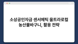 소상공인 여러분, 요즘 경제 상황이 녹록지 않다는 사실, 잘 알고 계실 겁니다. 하지만 이럴 때일수록 효과적인 자금 활용 전략이 필요합니다. 특히, 소상공인자금과 관련된 센서메틱 울트라로컬 농산물바구니의 활용 전략은 매우 유용할 수 있습니다. 이 글에서는 소상공인들이 ...