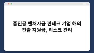 핀테크 기업의 해외 진출은 많은 창업자들에게 꿈이자 목표입니다. 그러나 자금 문제와 리스크 관리는 언제나 큰 고민거리죠. 이 글에서는 중소기업진흥공단(중진공)의 벤처자금이 핀테크 기업의 해외 진출을 어떻게 지원하는지, 그리고 리스크 관리의 중요성에 대해 알아보겠습니다. 핀테크 기업이 글로벌 ...