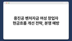 창업을 꿈꾸는 여성 여러분, 자금 조달과 현금 흐름 관리가 얼마나 중요한지 잘 아시죠? 중진공의 벤처자금 지원은 이러한 문제를 해결하는 데 큰 도움이 됩니다. 하지만 단순히 자금을 받는 것만으로는 부족합니다. 현금 흐름 개선 전략을 통해 안정적인 ...
