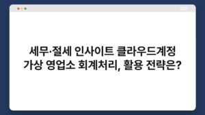세무·절세 인사이트 클라우드계정 가상 영업소 회계처리, 활용 전략은?